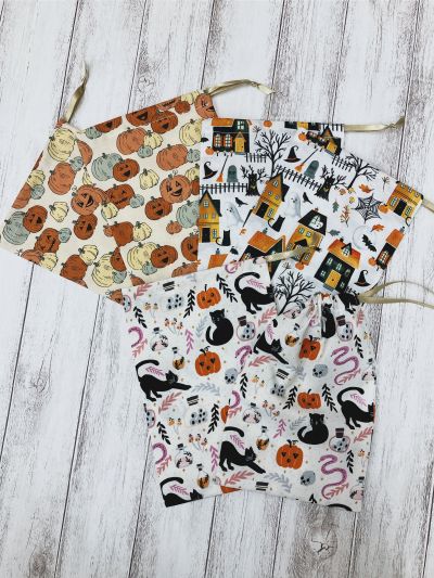可愛いハロウィンのプリントの生地を見つけたので巾着袋を作りました。