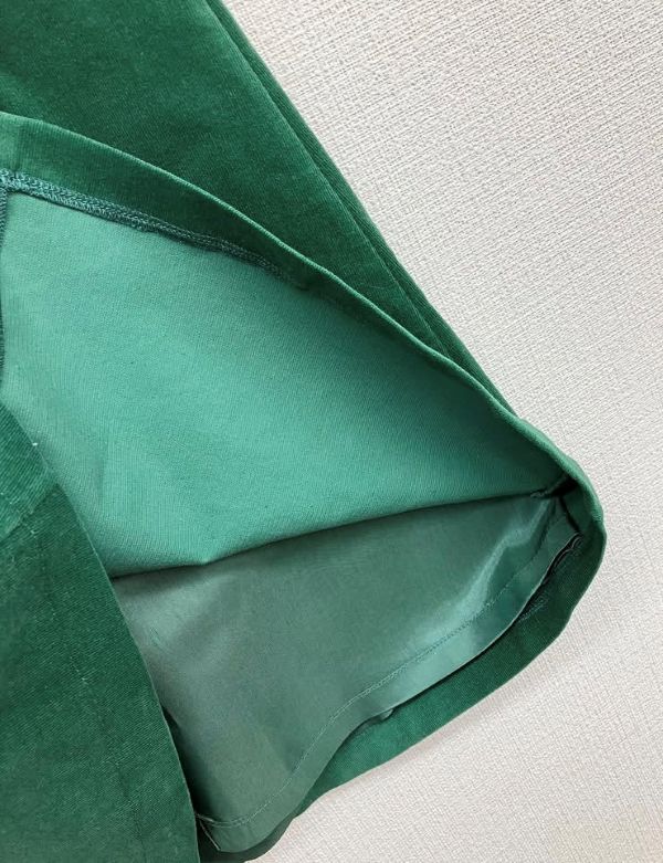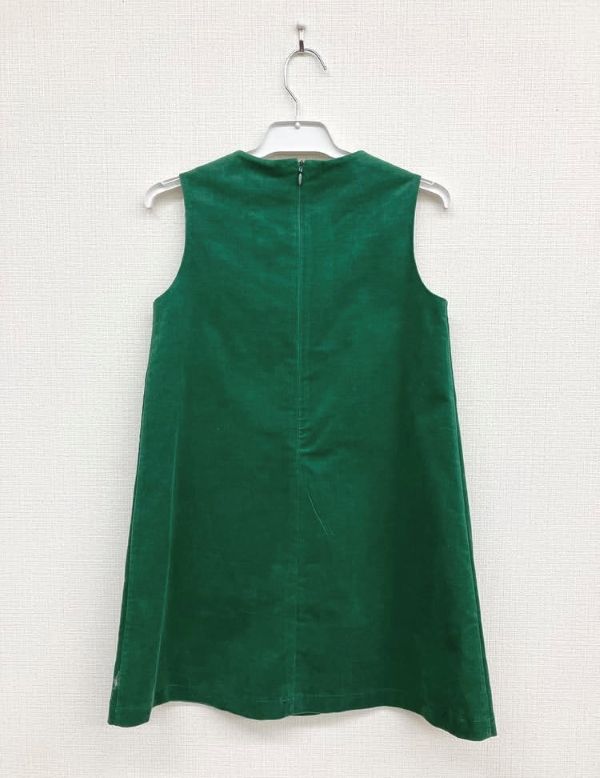 深いグリーンが綺麗な色のコーデュロイ・ジャンバースカート。