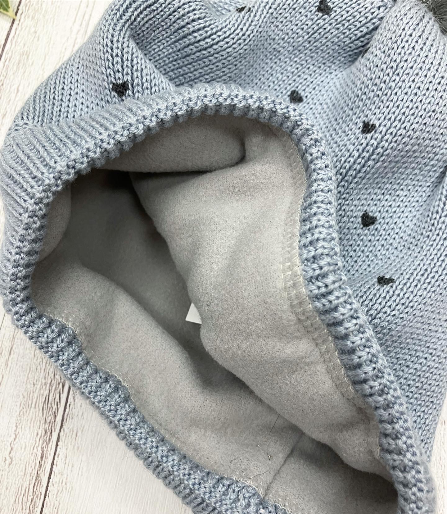 ハートのプリントが散りばめられた可愛いニット帽♡