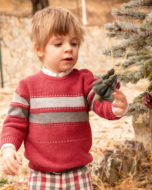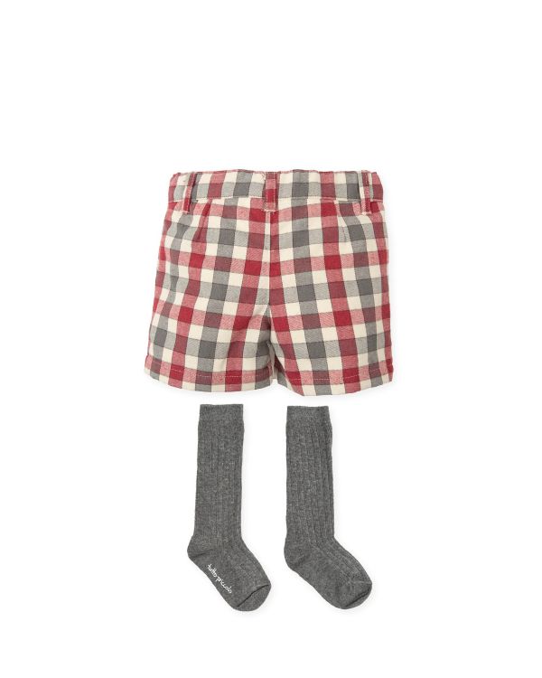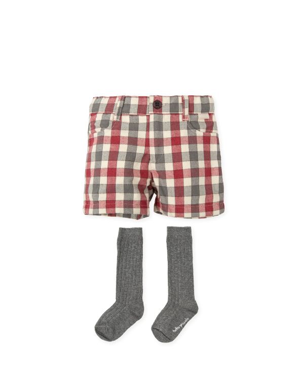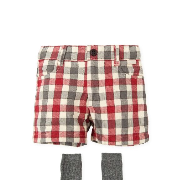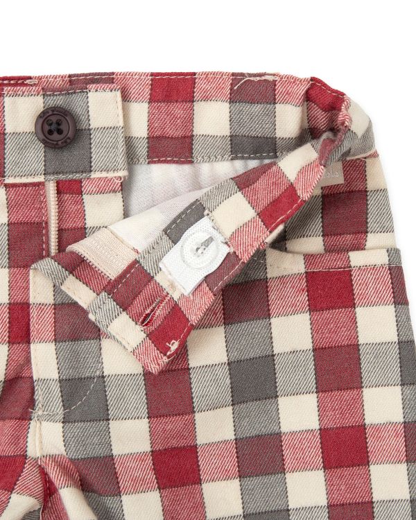 *コットン素材のパンツはセーターと同じ配色のチェック柄。