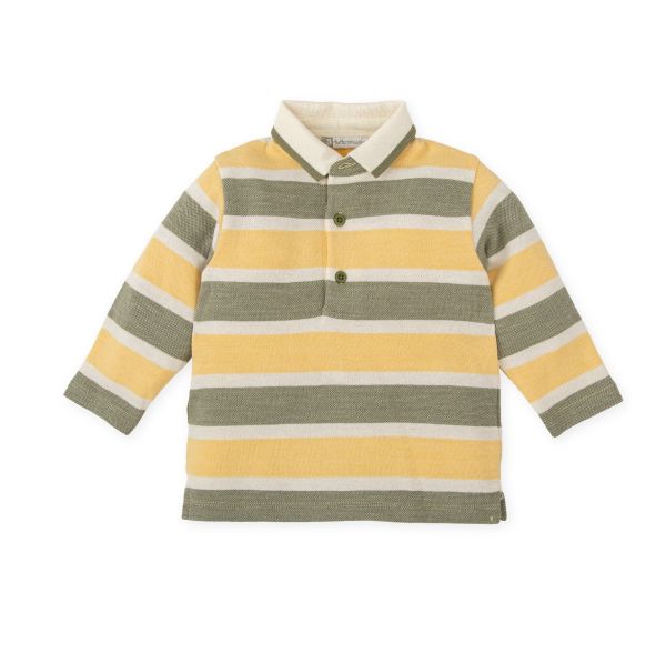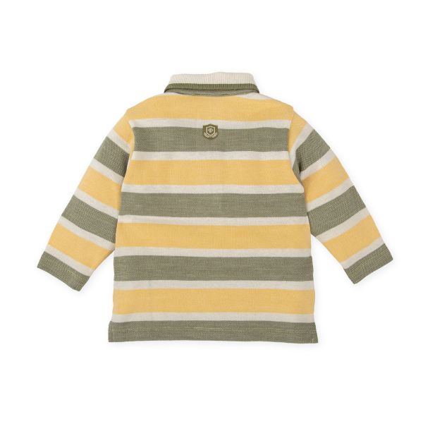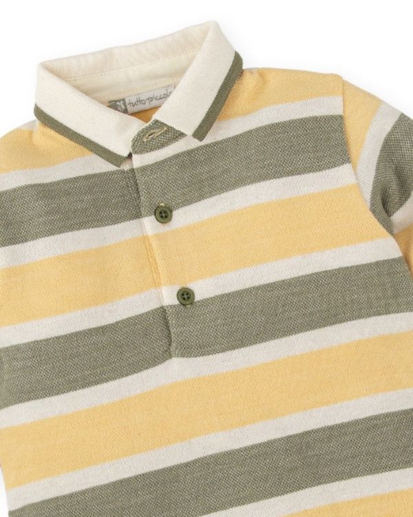 オフホワイト・モスグリーン・イエローの3色を使用したボーダー柄。