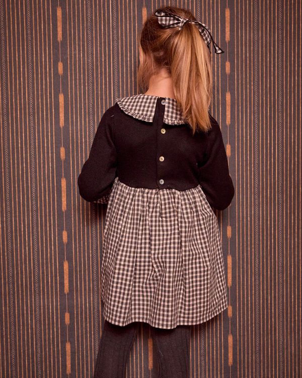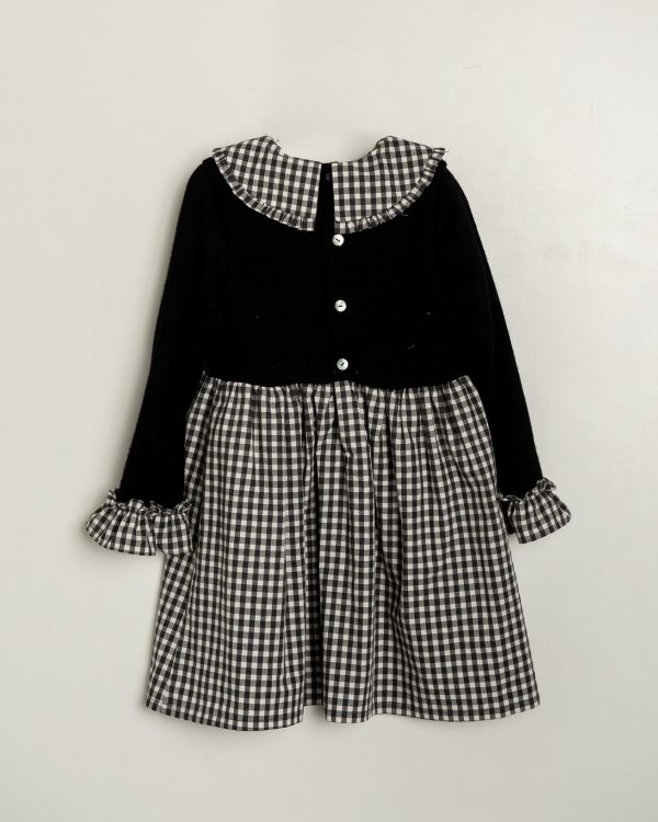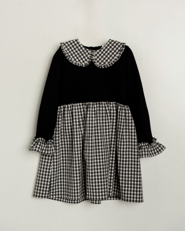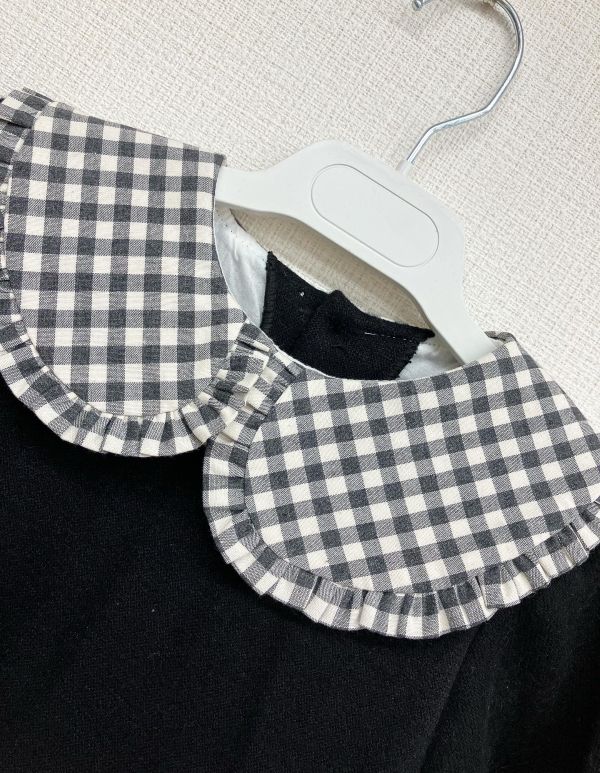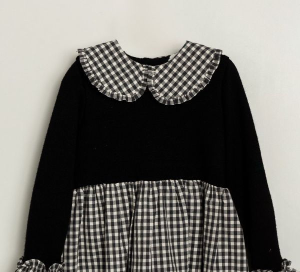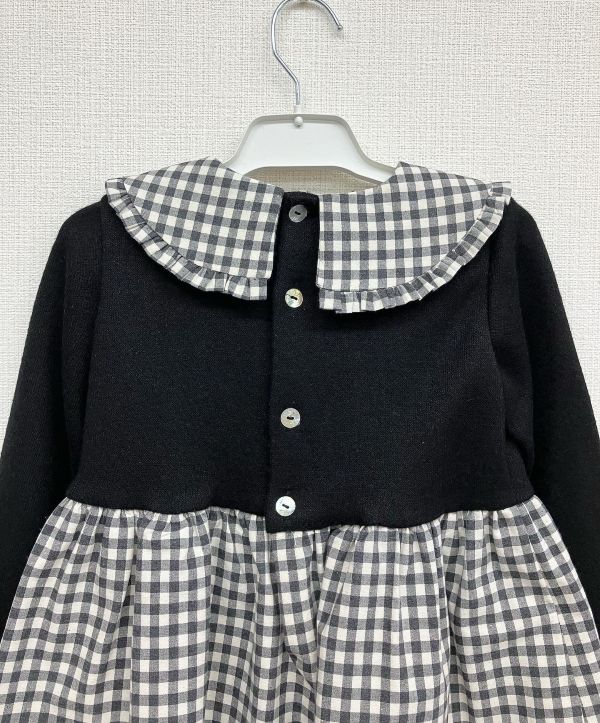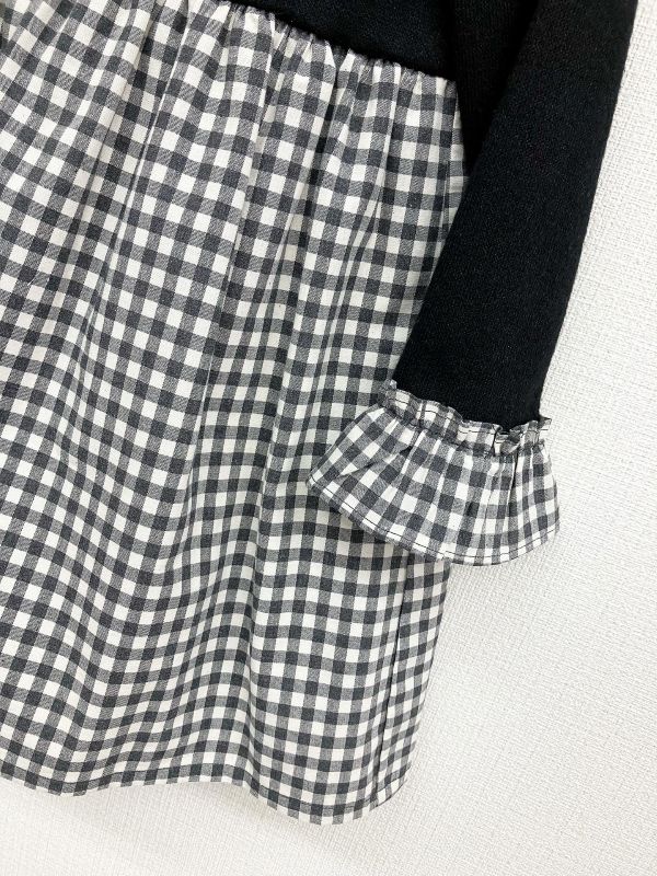 ジャージ素材とギンガムチェックを組み合わせたドッキングワンピース。