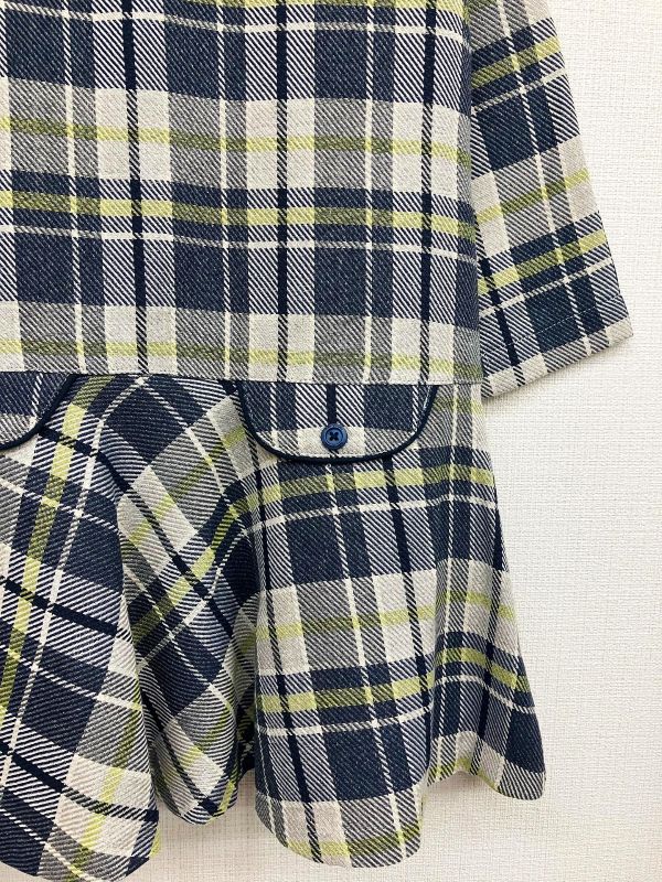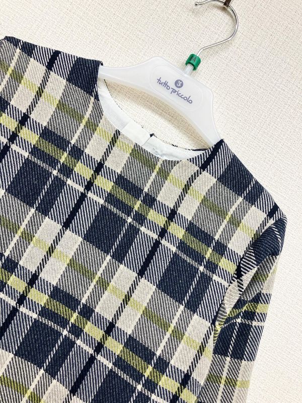 タータンチェックを使用したローウエスト切り替えのワンピース。