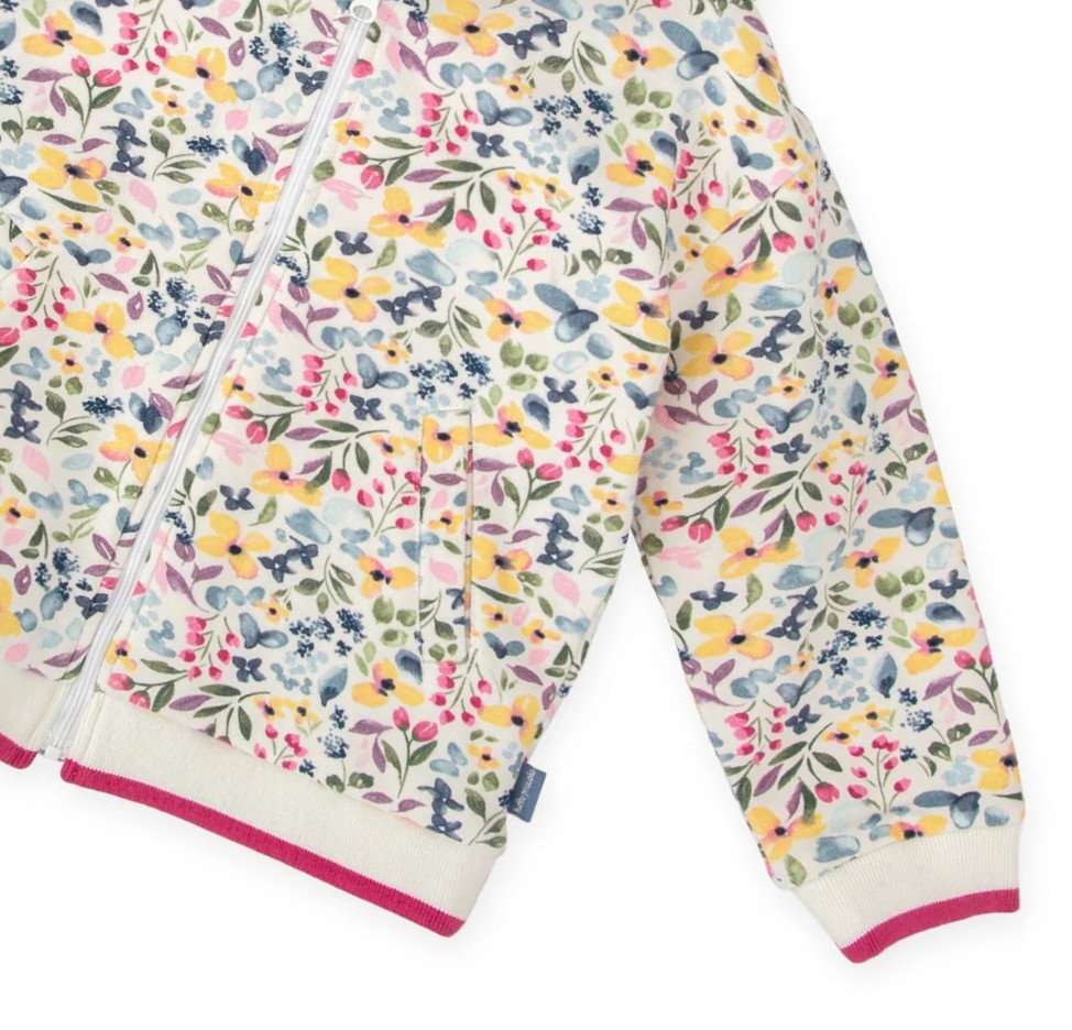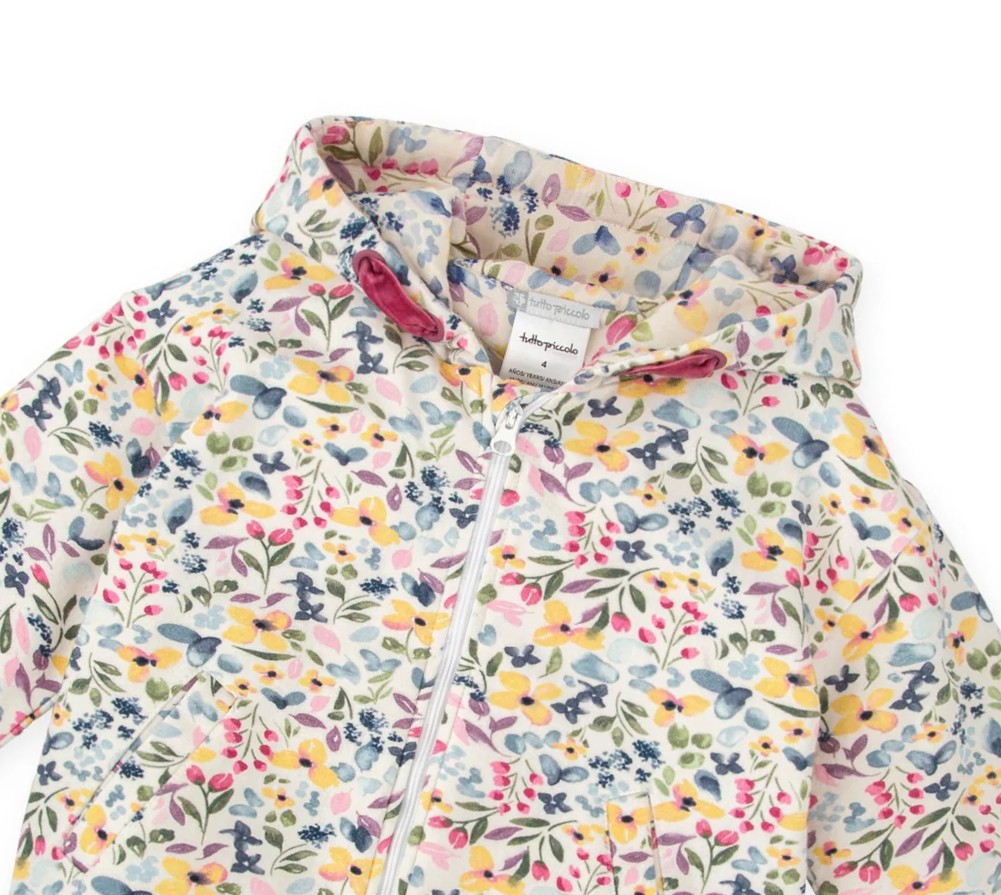 華やかなフラワープリントのジップパーカー。