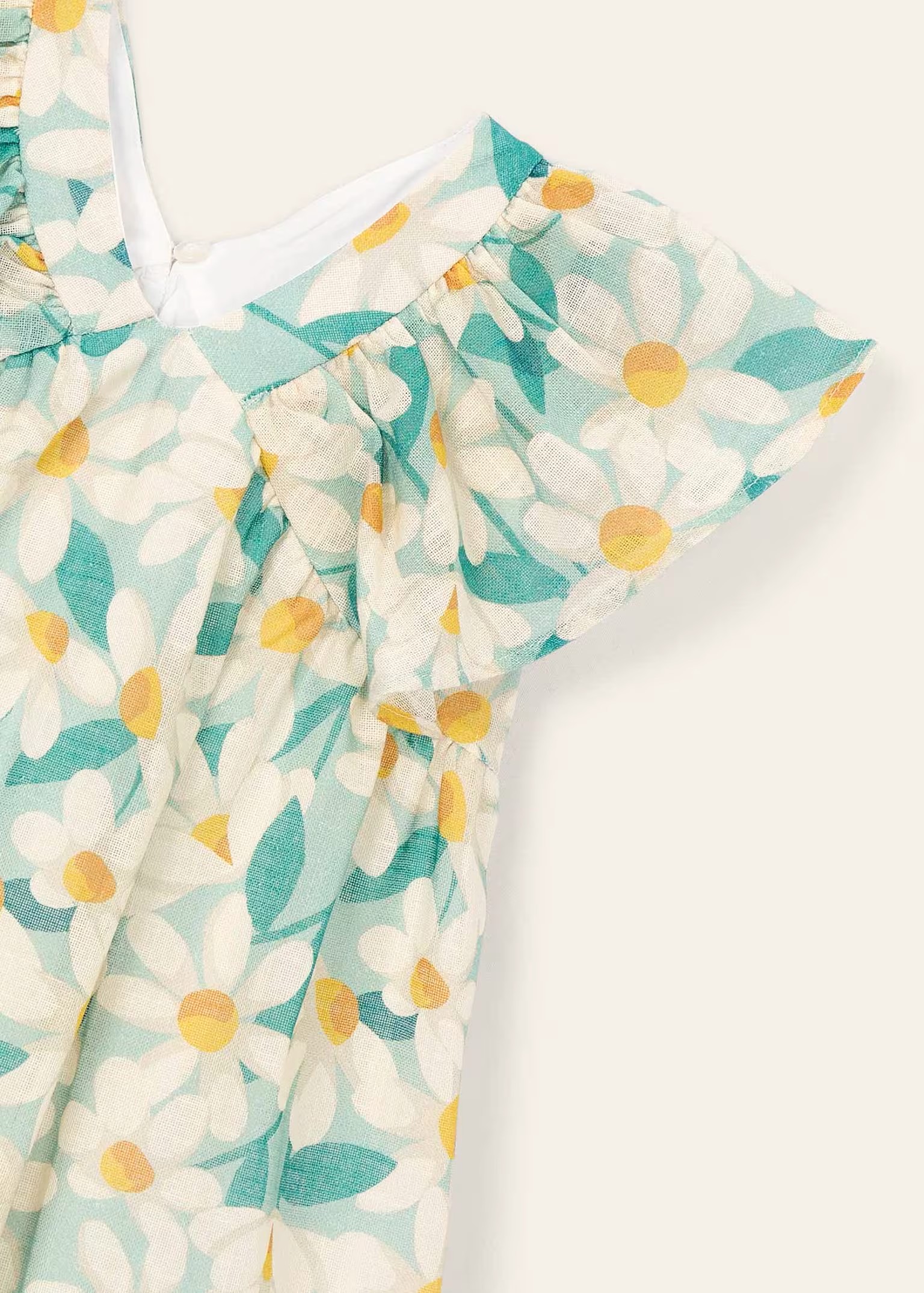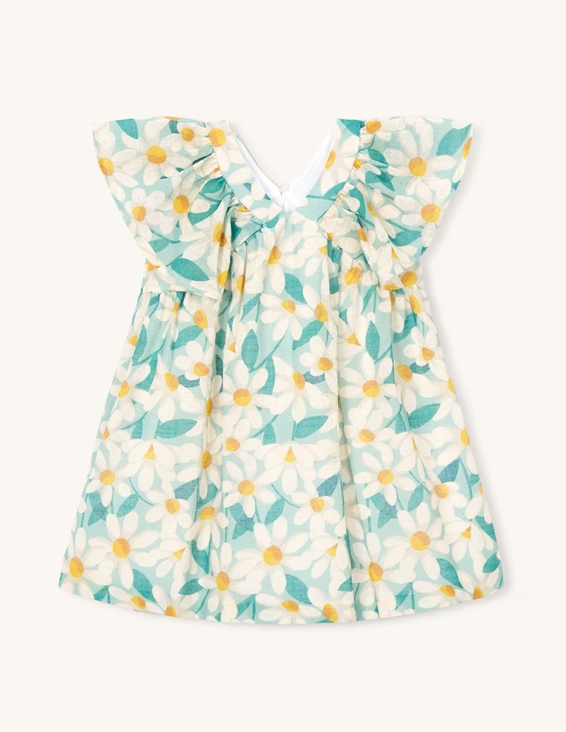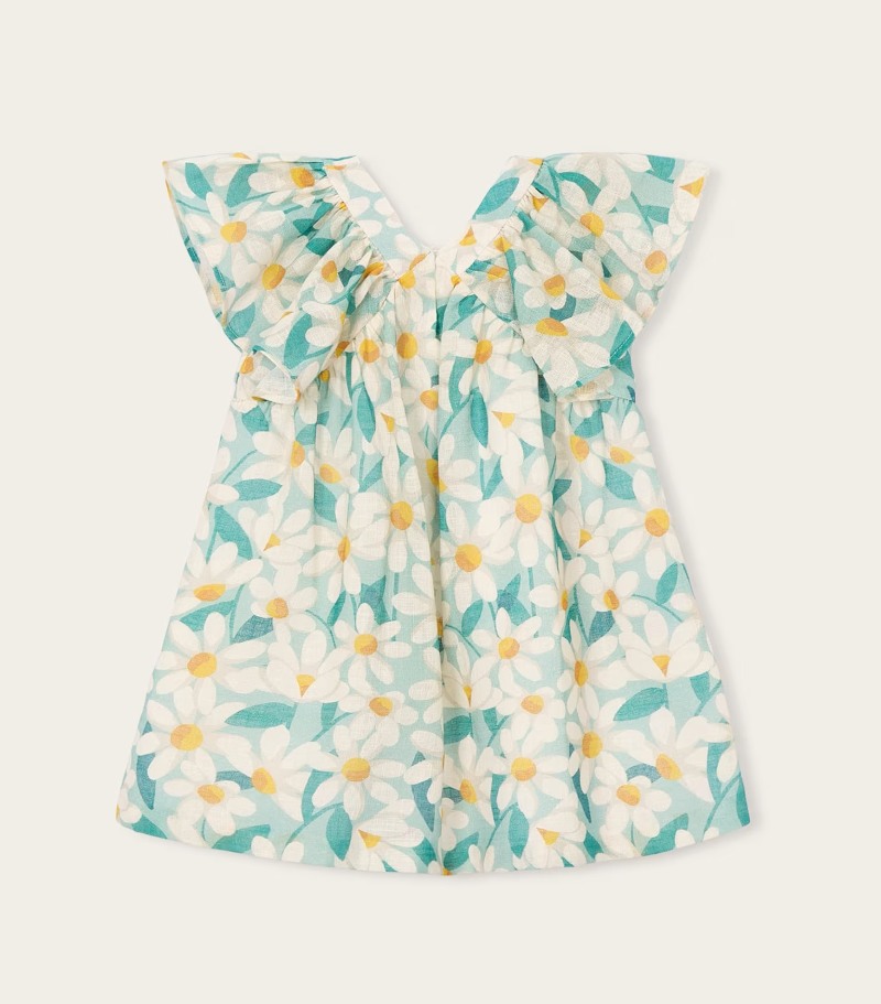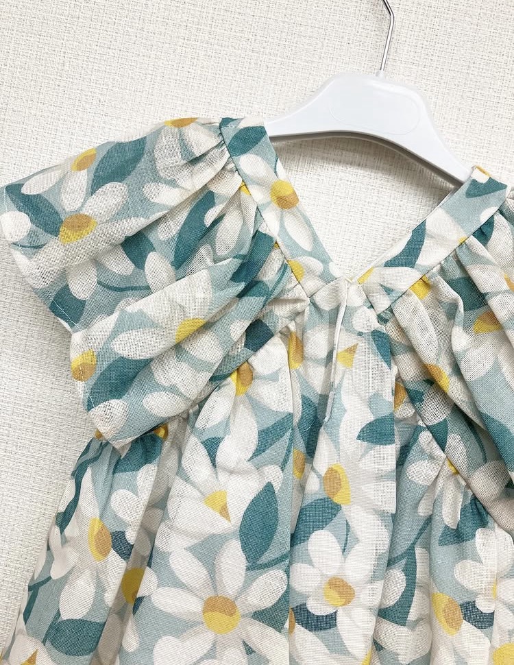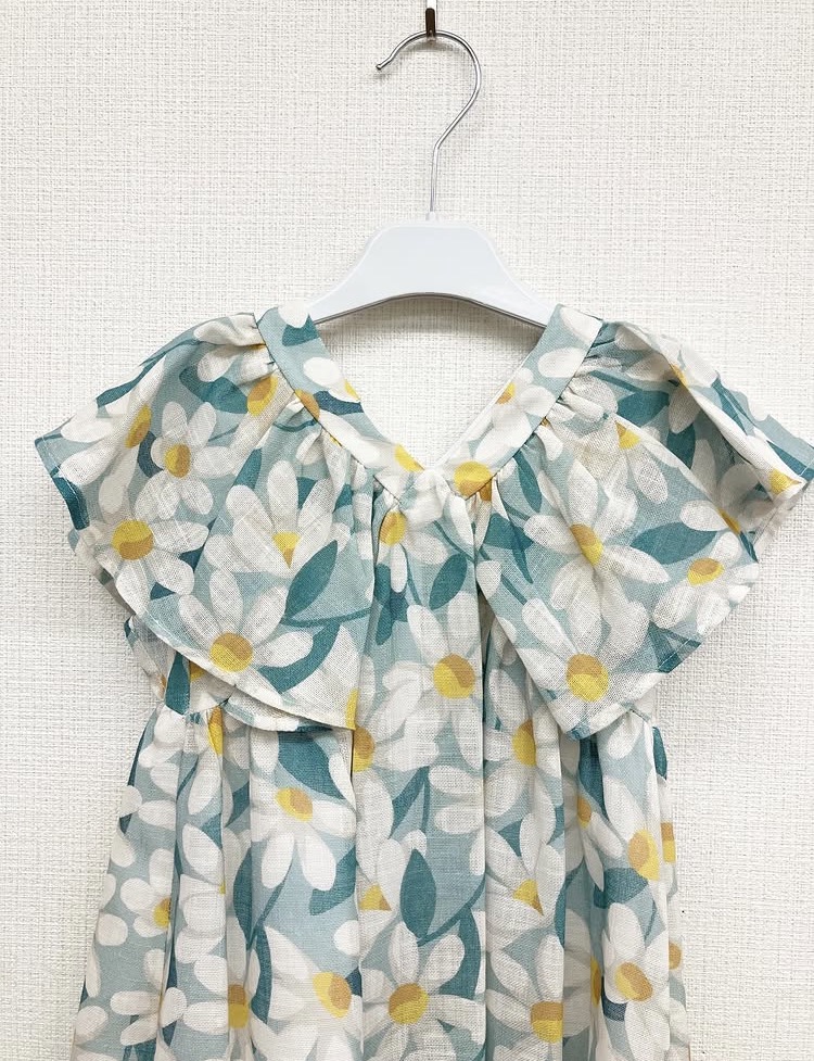 ノースリーブに大ぶりのギャザーフリルがロマンティック。