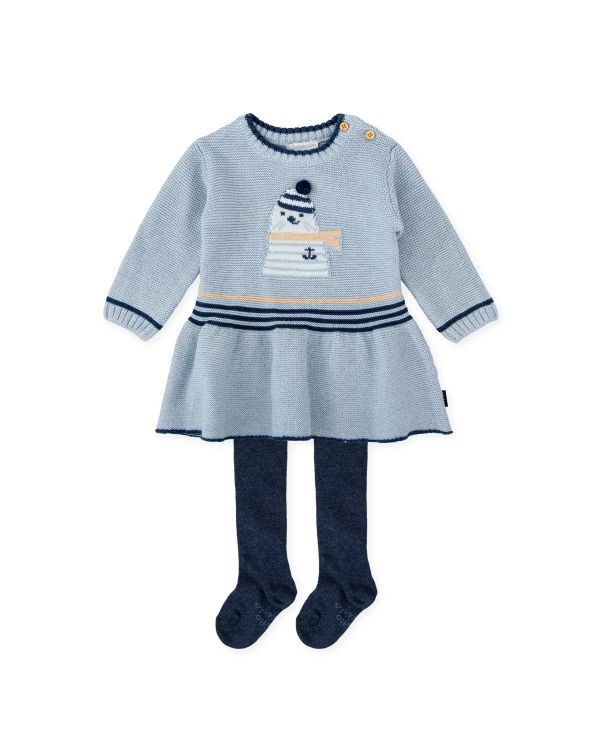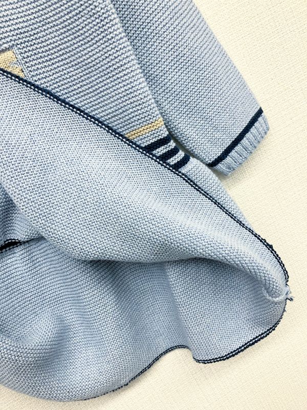 ヨーロッパらしい落ち着いたブルーグレーに紺とベージュのラインが素敵です。