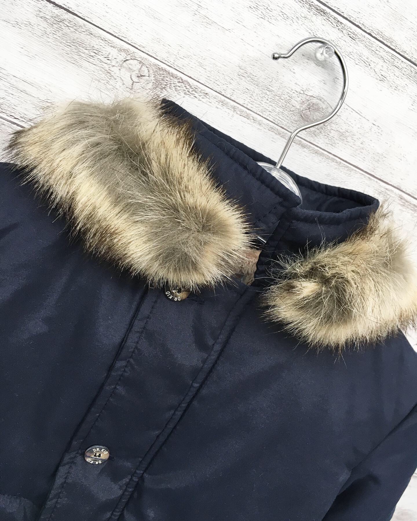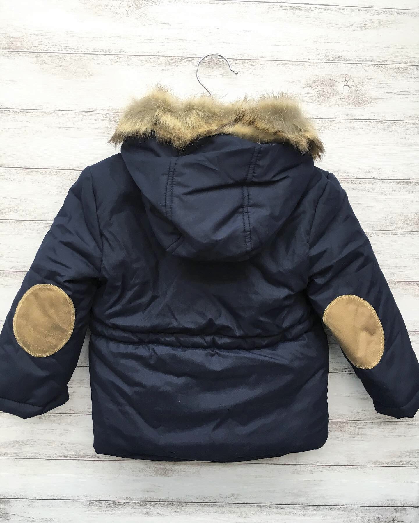 シンプルな中にもフードのファーや袖のエルボーパッチが