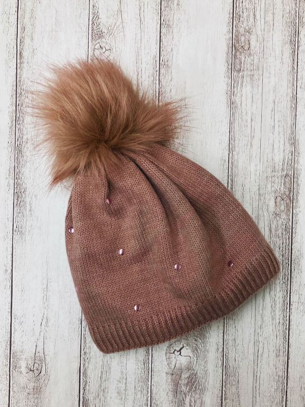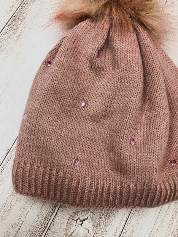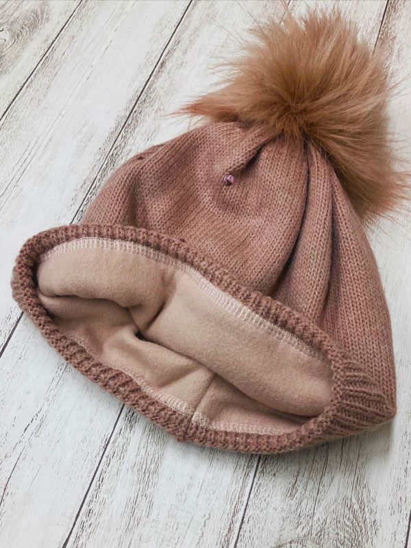 ヨーロッパらしい落ち着いたピンク・モーヴピンクのニット帽。