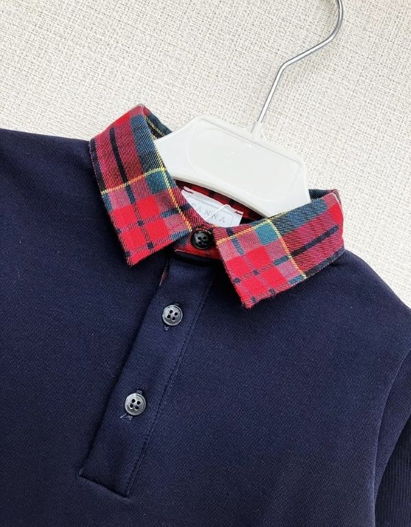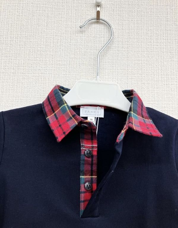 紺色の身頃に赤・グリーン・イエローのタータンチェックの襟を