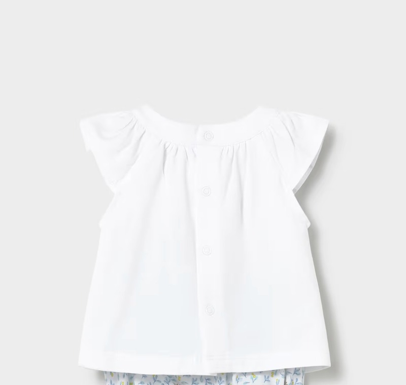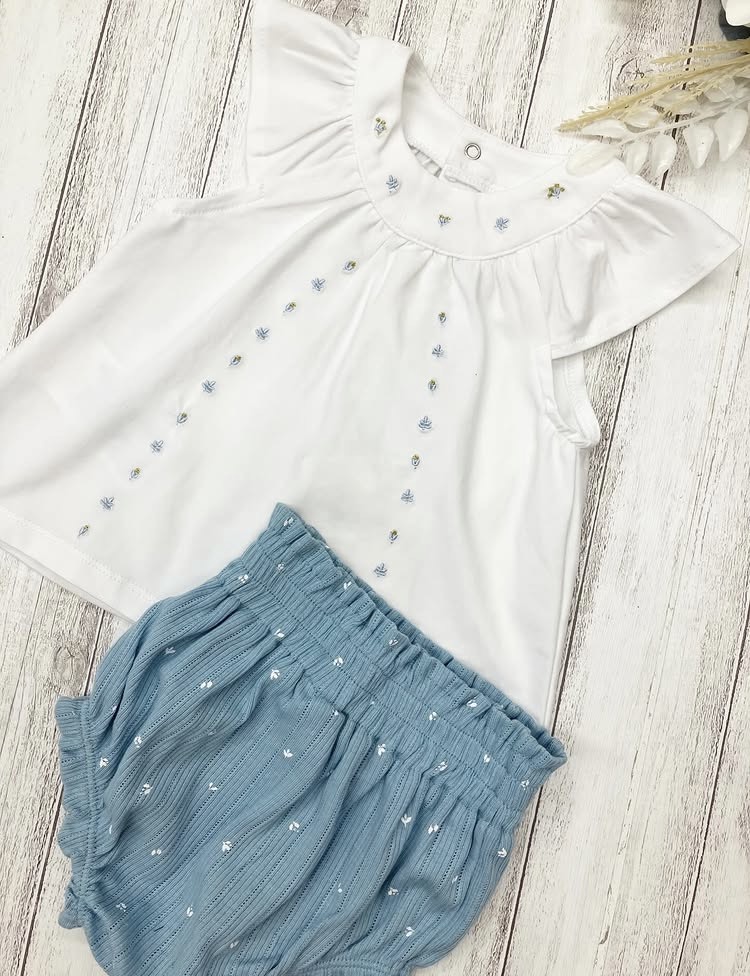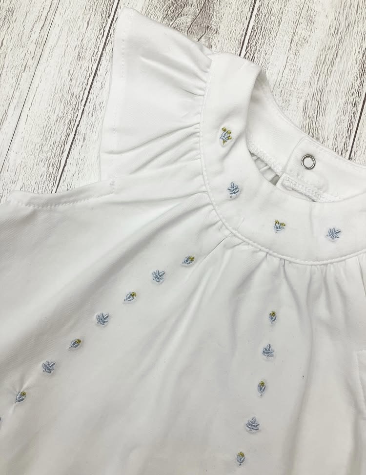 お花の刺繍がされたチュニック&ブルマのセット。