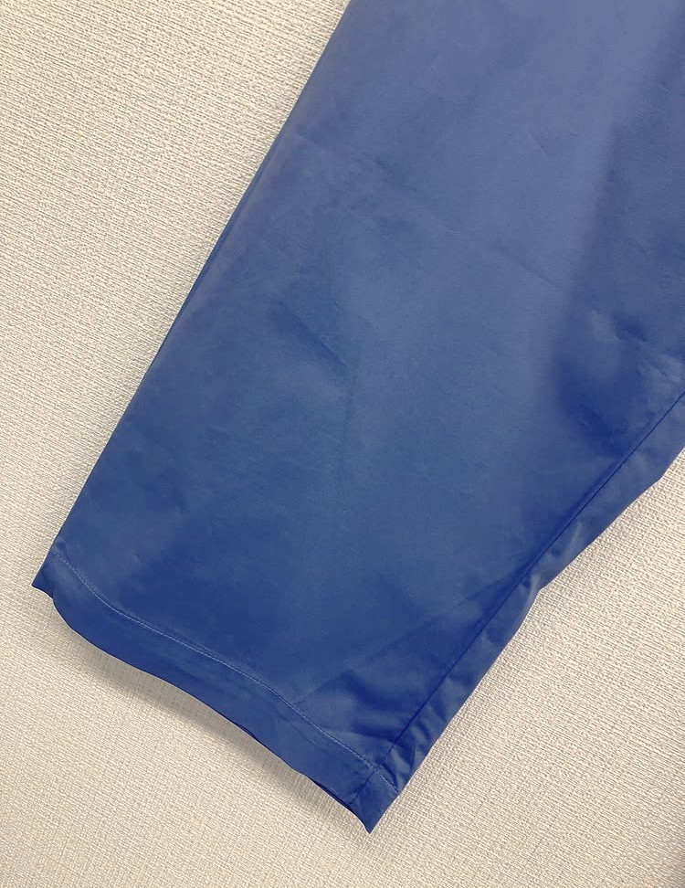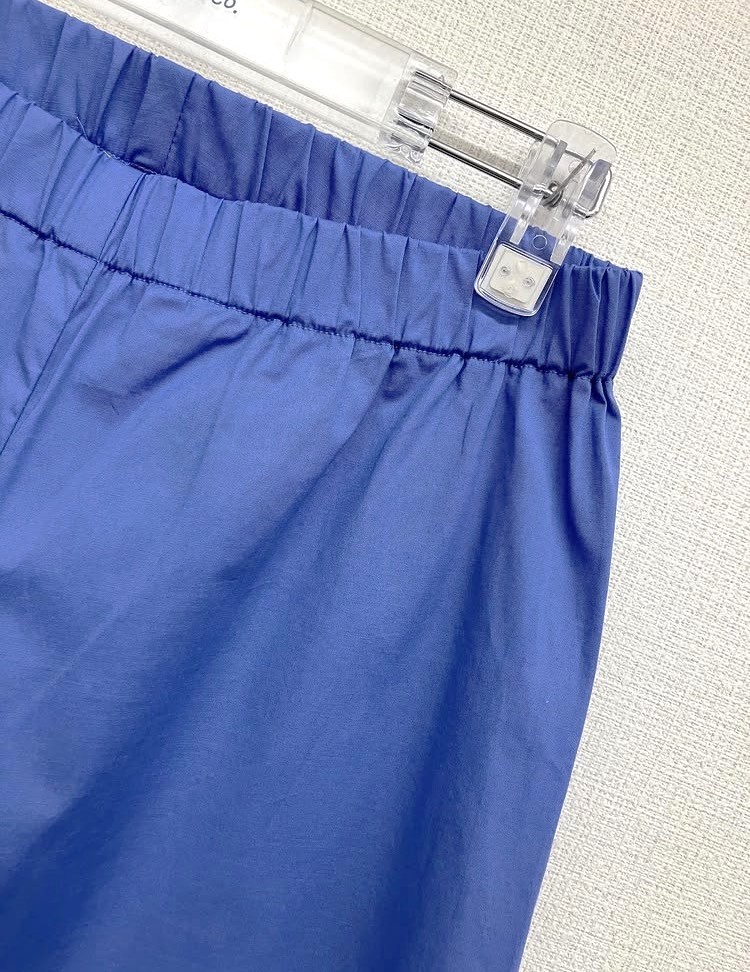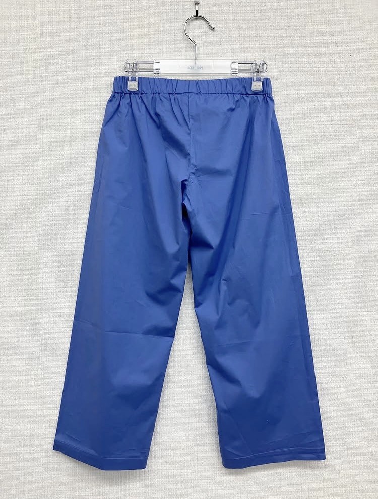 ヨーロッパらしい落ち着いたブルーのワイドパンツ。