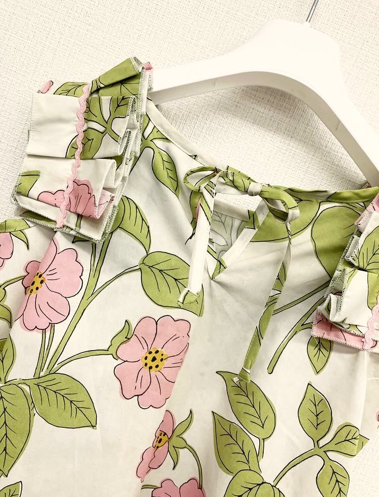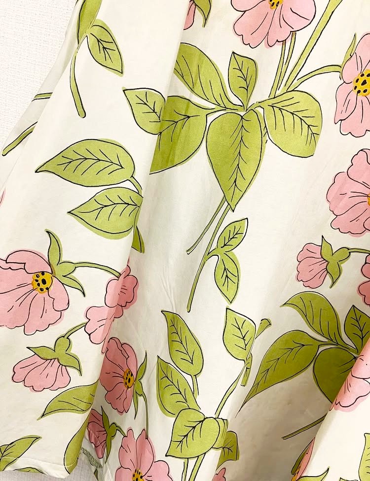 ピンクのお花と緑の葉がロマンティックにプリントされた