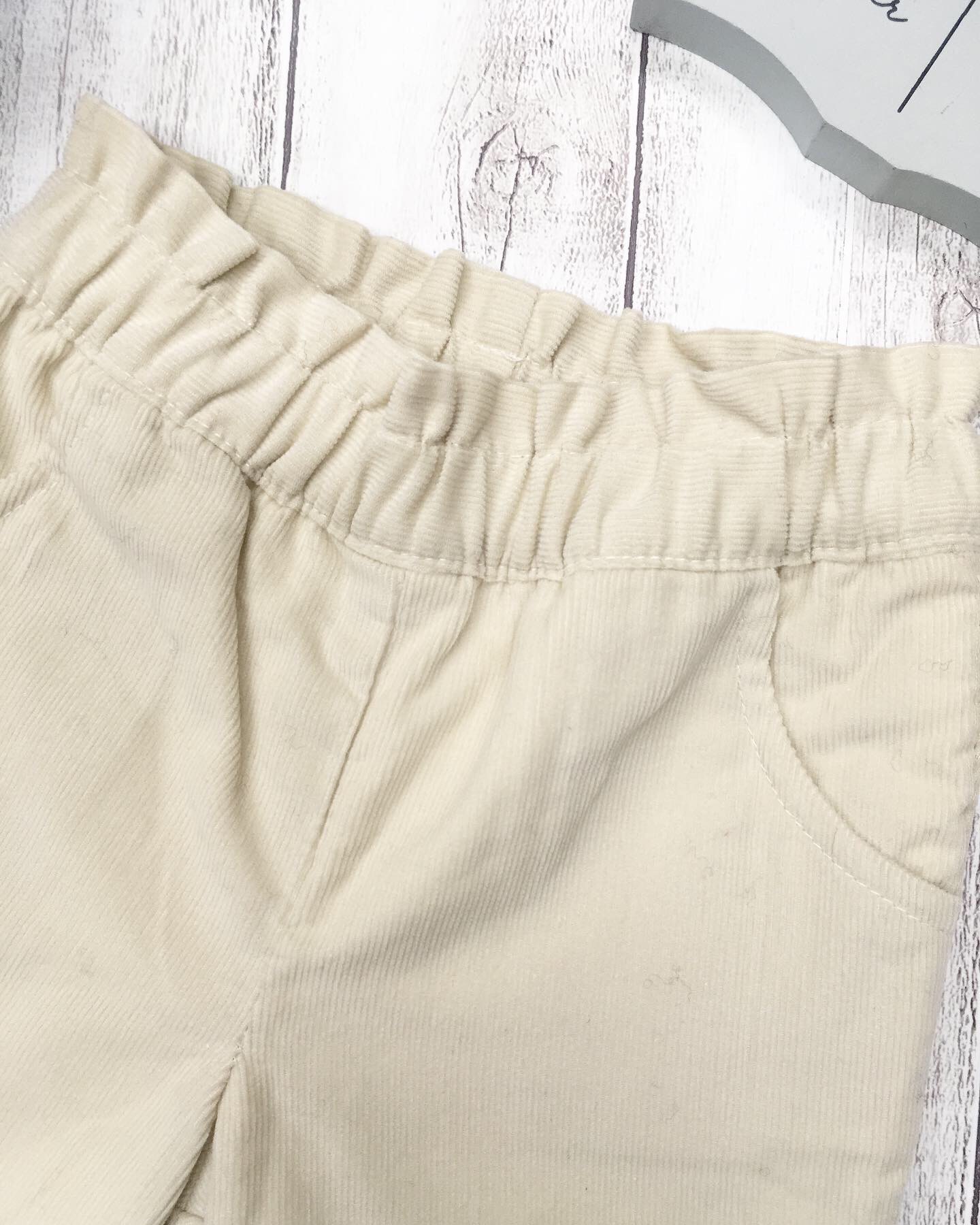 オフホワイトのコーデュロイパンツ。
